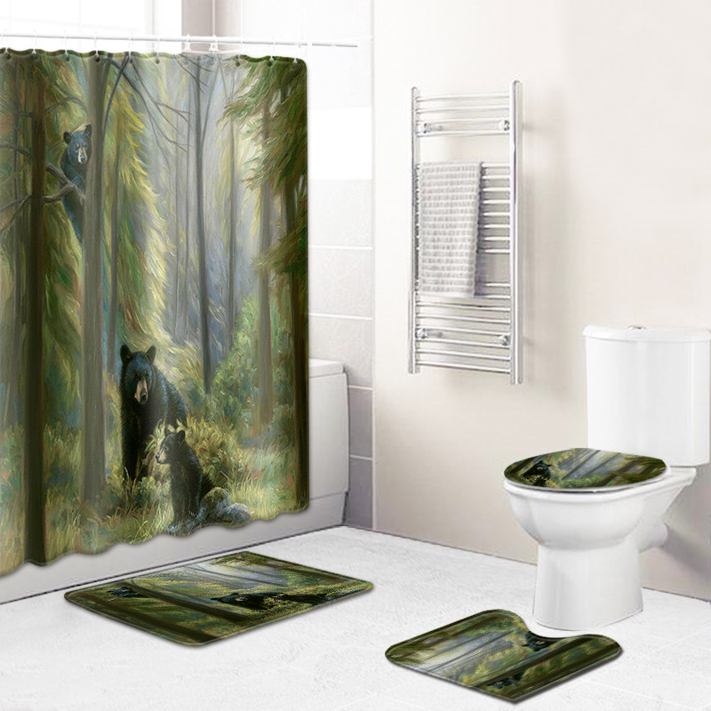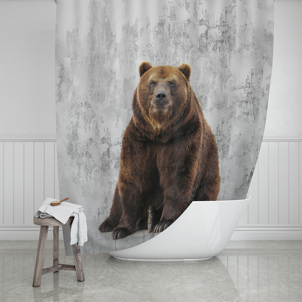 カントリースタイルクマシャワーカーテン森林田舎自然楽しい動物山森林ヒグマ狩猟キャンプ防水生地バス
