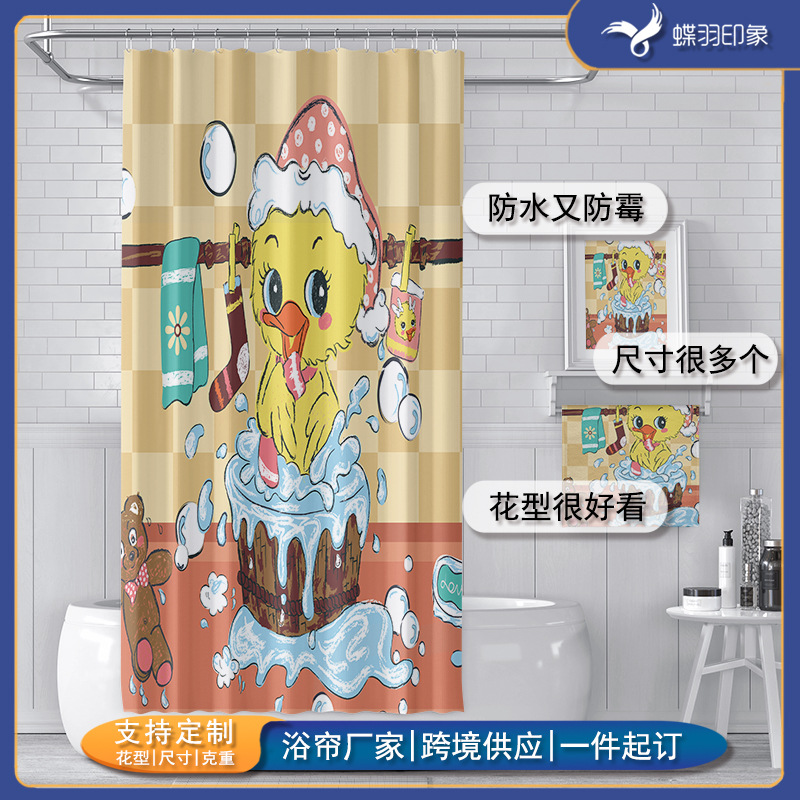 ネット赤小黄鴨3dデジタルプリントシャワーカーテンが国境を越えたアマゾン速売通浴室カーテン卸売りは図で決めることができる