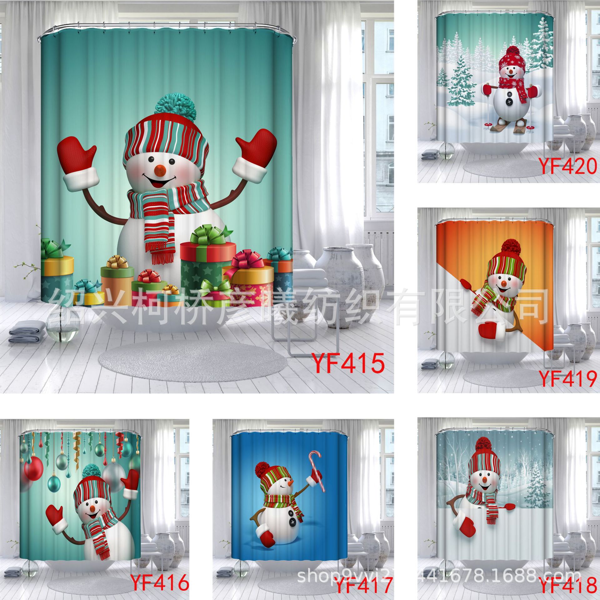 クリスマス小雪人形バスカーテン足マットデジタルプリントトイレ三点セット四点セット浴室用品の価格が高い