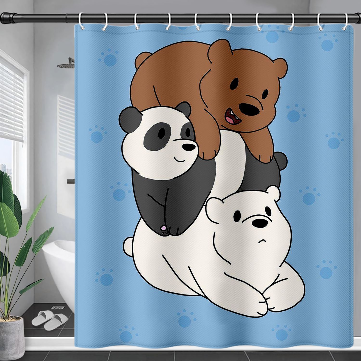 国境を越えた電子商取引漫画クマのシャワーカーテン厚みのあるハイエンド防水布パンチフリー浴室バスパーティションカーテン