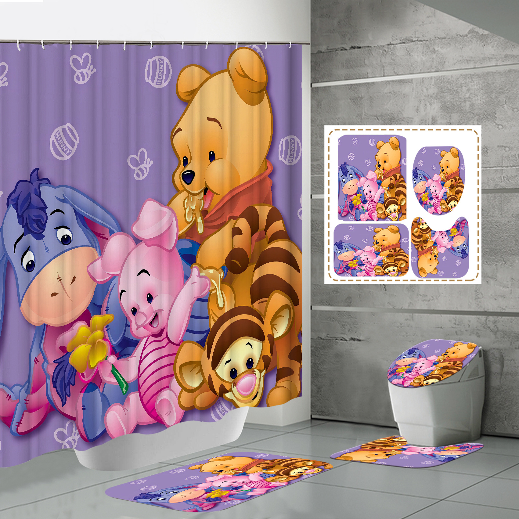 源メーカークロスボーダー電気商3dデジタルプリント防水ポリエステル浴室シャワーカーテン維尼熊シリーズメーカー直販
