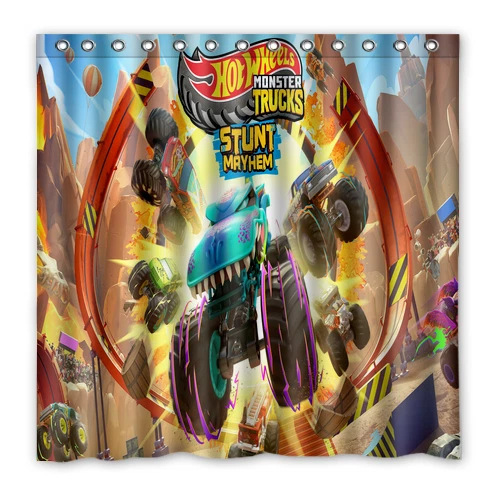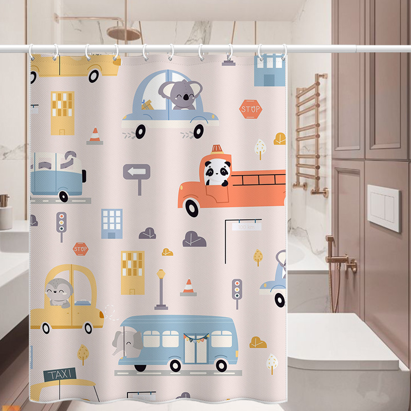 クロスボーダーシャワーカーテン子供の漫画車のおもちゃ防水シャワーカーテンデジタル印刷浴室パーティションカーテンフック画像付き