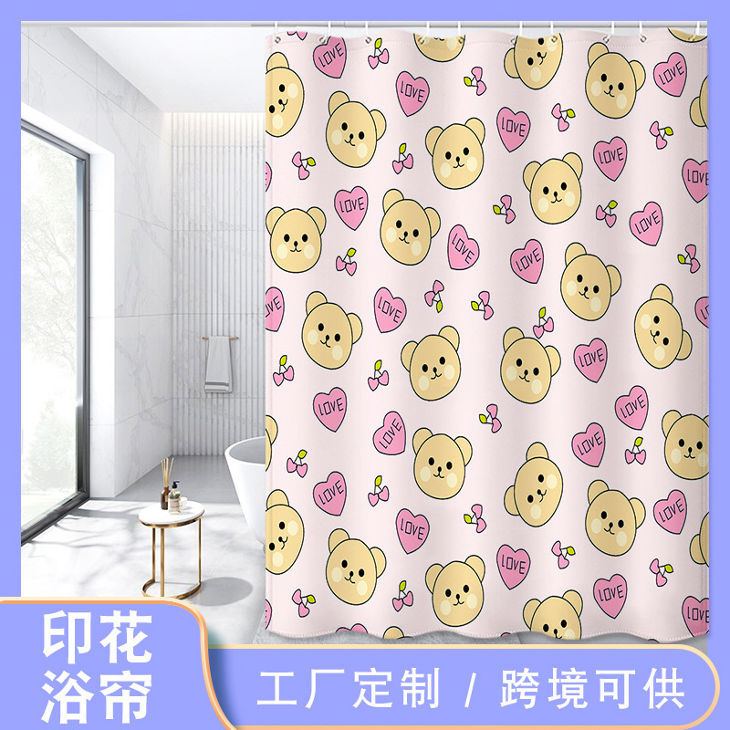クロスボーダーかわいい漫画熊デジタルプリントシャワーカーテン防水浴室シャワーカーテントイレシェード来図カスタマイズ