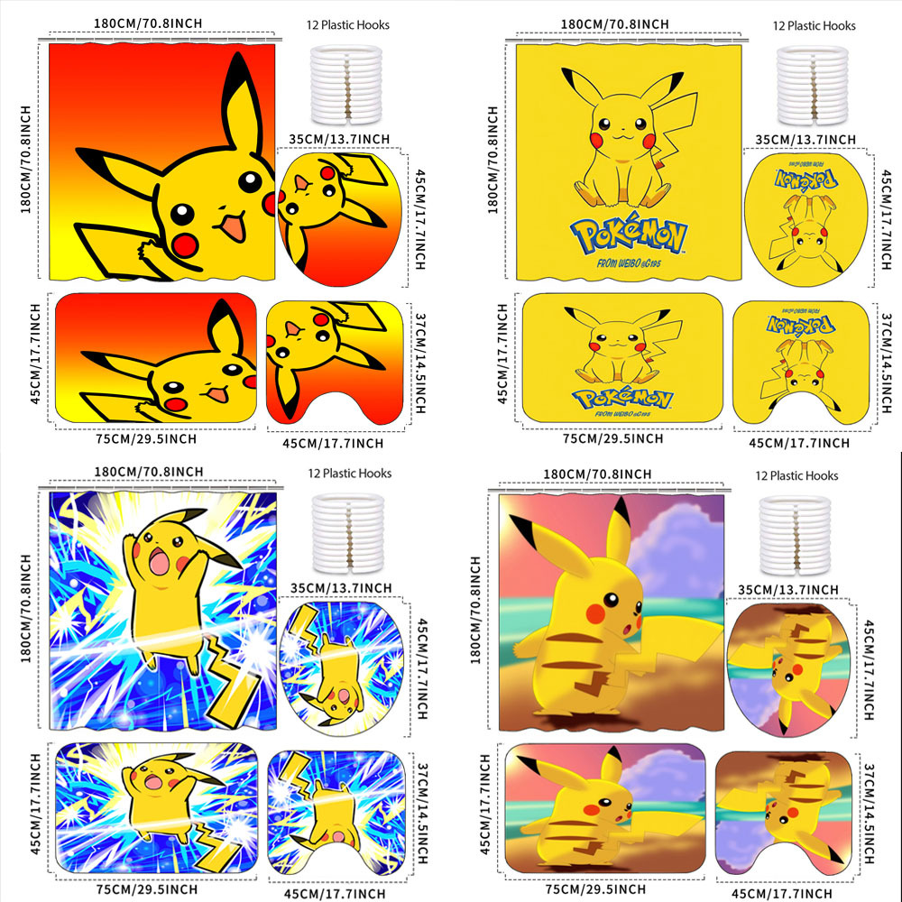 国境を越えた人気アニメピカチュウの浴室カーテン防水防かびトイレの浴室カーテン3点セットアメリカアニメの浴室カーテン