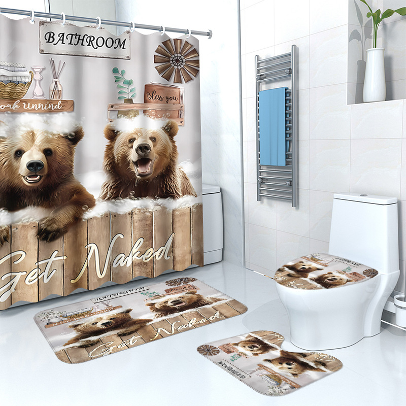 浴室板熊浴簾床マット4点セット家庭用トイレの乾湿分離遮断浴簾防水浴カーテン