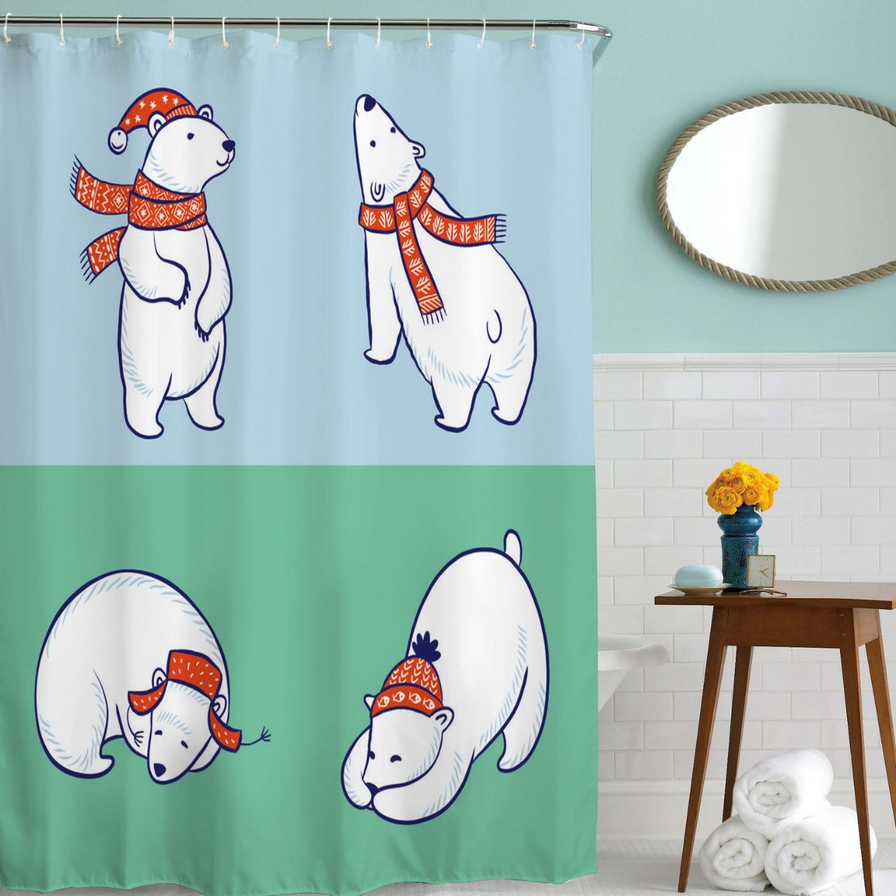アマゾンの外国貿易動物の熊のシャワーカーテンのデジタルプリントのポリエステルの防水の布は穴を開けないで浴室はカーテンを遮ります。