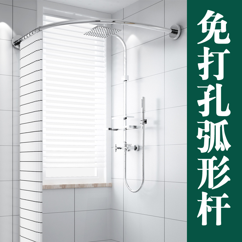 浴室防水シャワーカーテンセット穴なしシャワーカーテンアーチ型シャワートイレ遮断カーテン伸縮l型王小祥