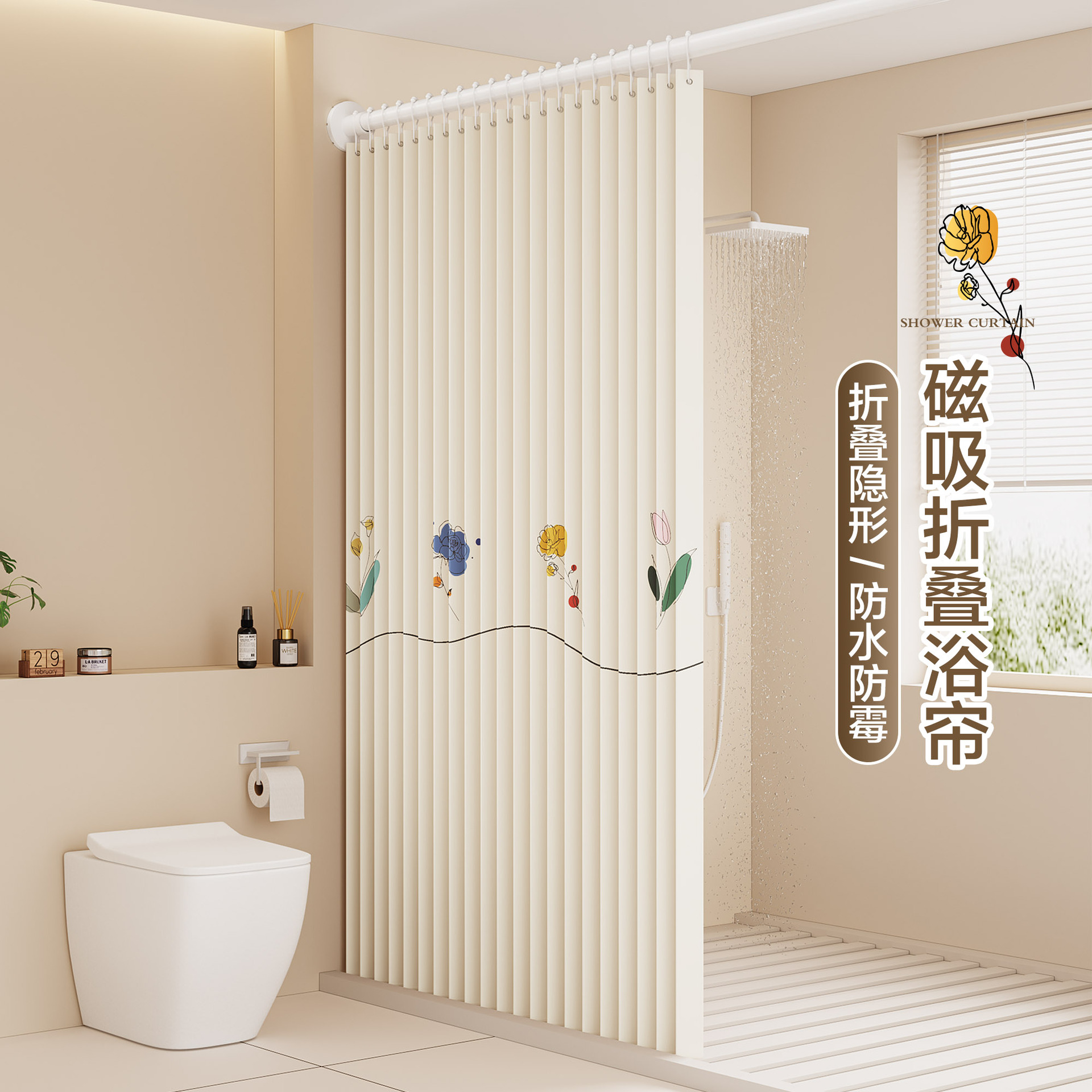 トイレ折り畳みシャワーカーテン穴なしセット乾湿分離遮断カーテン見えない浴室カーテン防風断熱カーテン