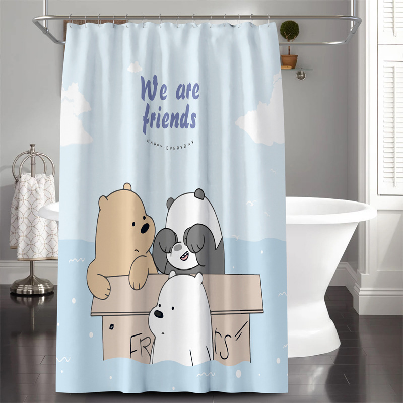 防水シャワーカーテン国境を越えたアマゾンポリエステルトイレシャワーカーテンメーカー浴室カーテンかわいいベアー赤ちゃんカーテン