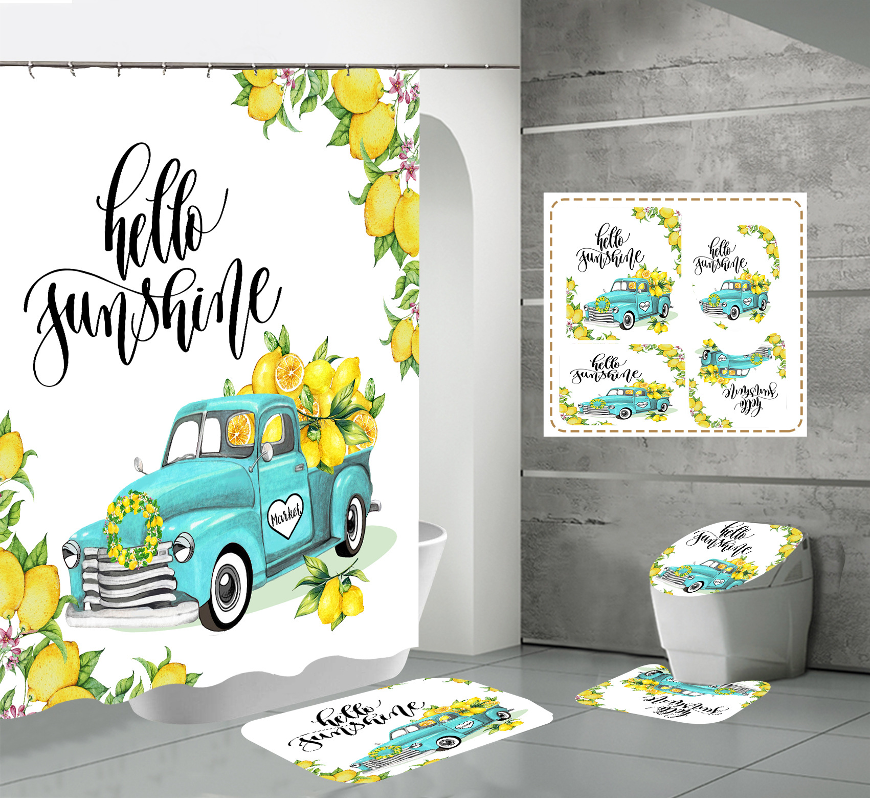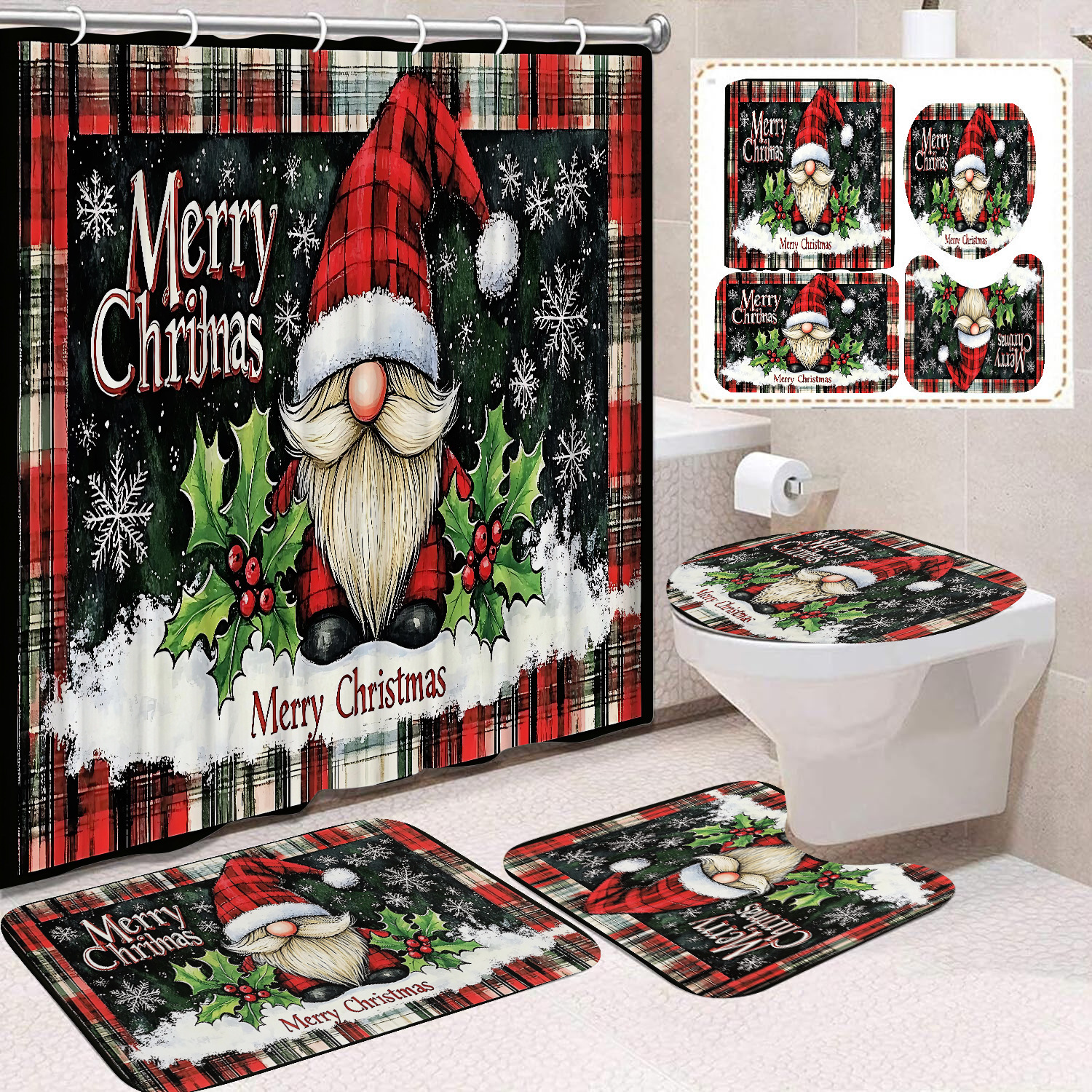 工場直販の新しいクリスマスバスルーム4点セット防水シャワーカーテン寝室滑り止めフロアマットクリスマスカー