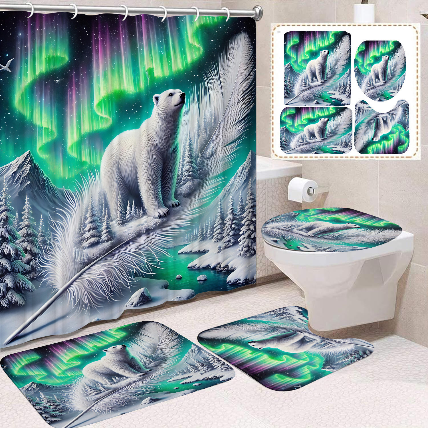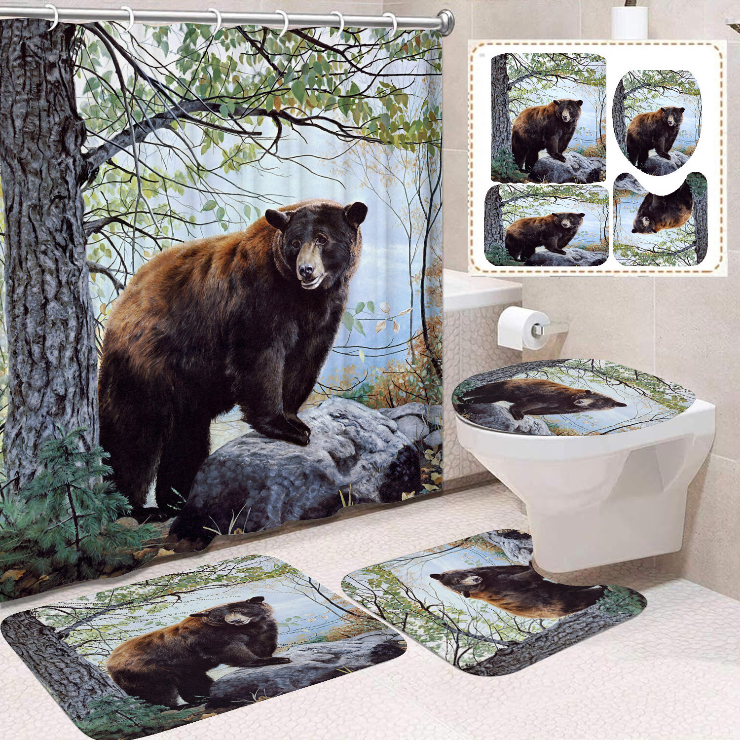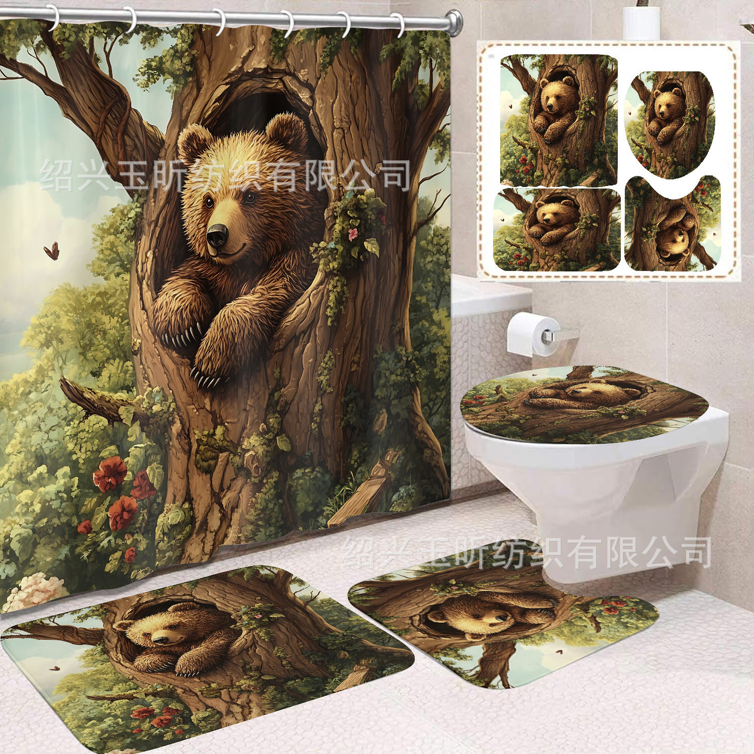 国境を越えたTEMUポリエステル防水シャワーカーテンセット3dプリントバスカーテントイレ面白いベアー浴室4点セット