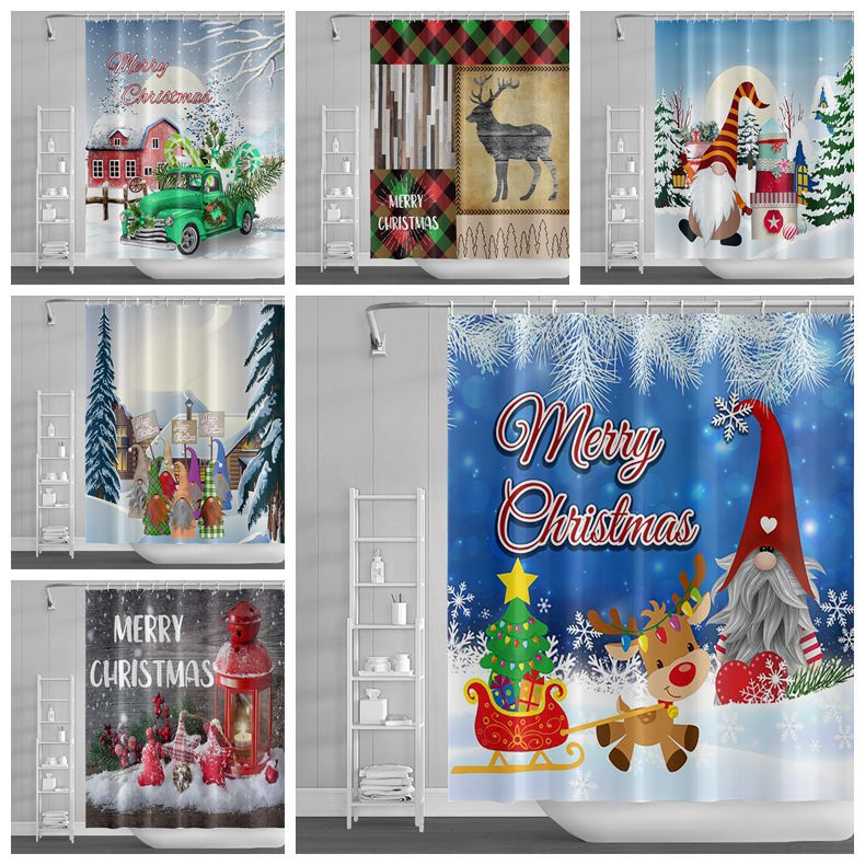 アマゾンの起爆ポリエステル防水シャワーカーテントイレの遮断カーテンが顔人形サンタクロース浴室のカーテンを覆っている