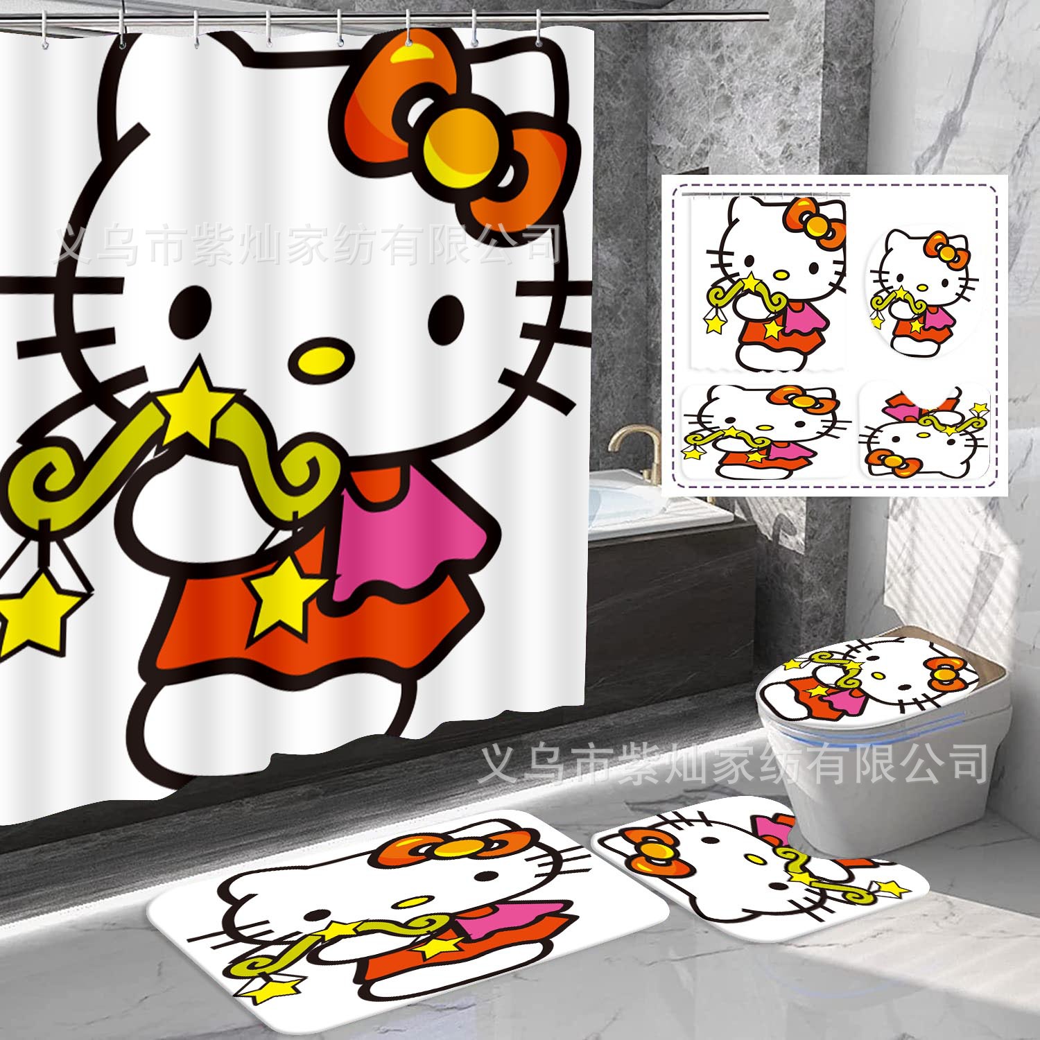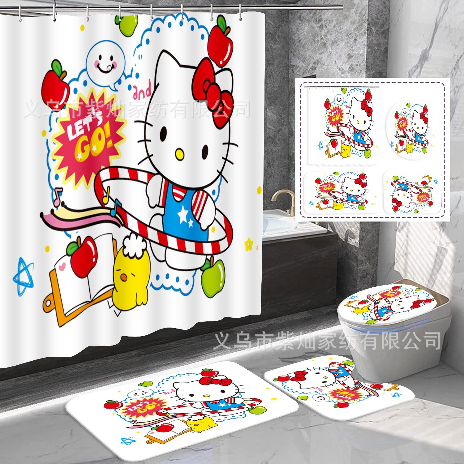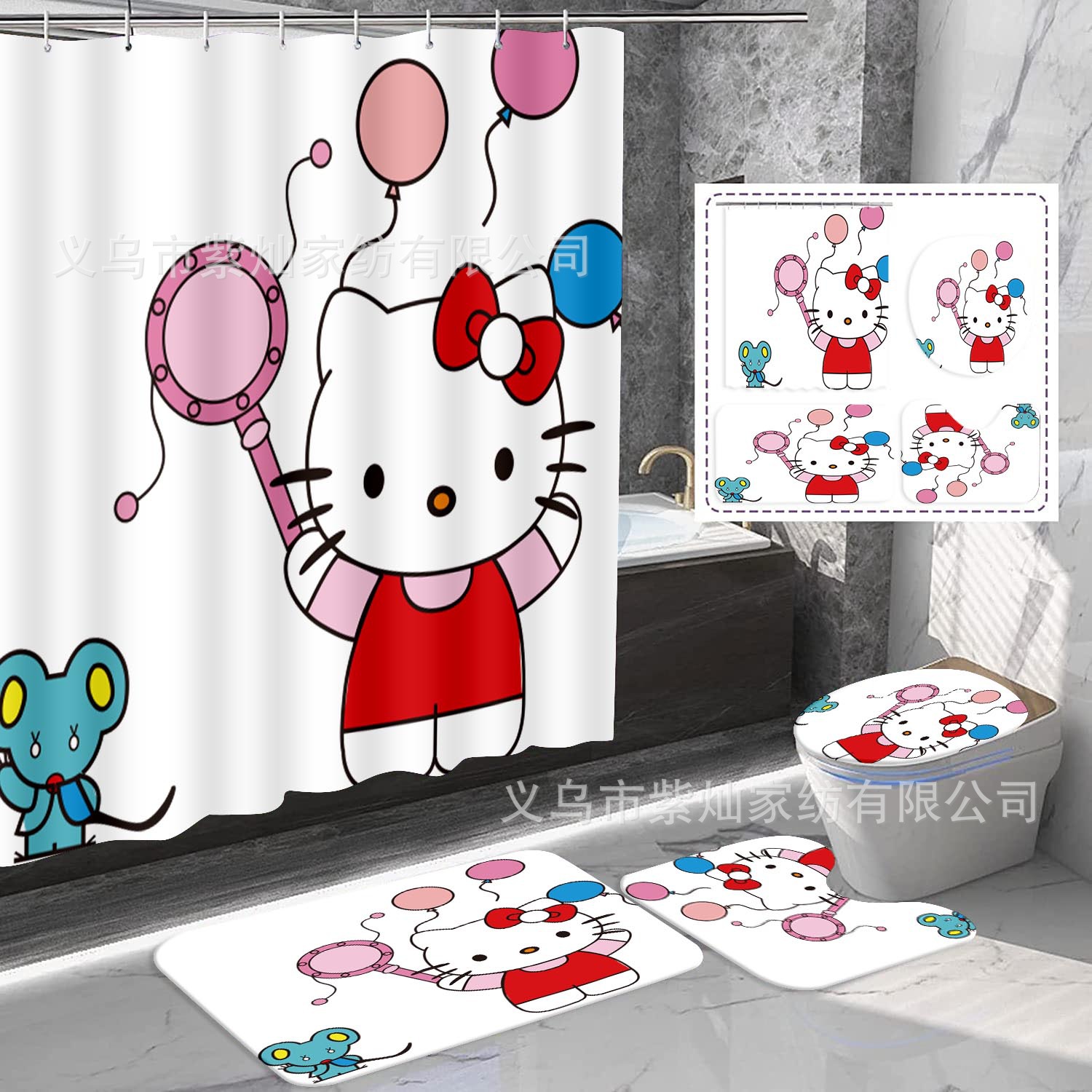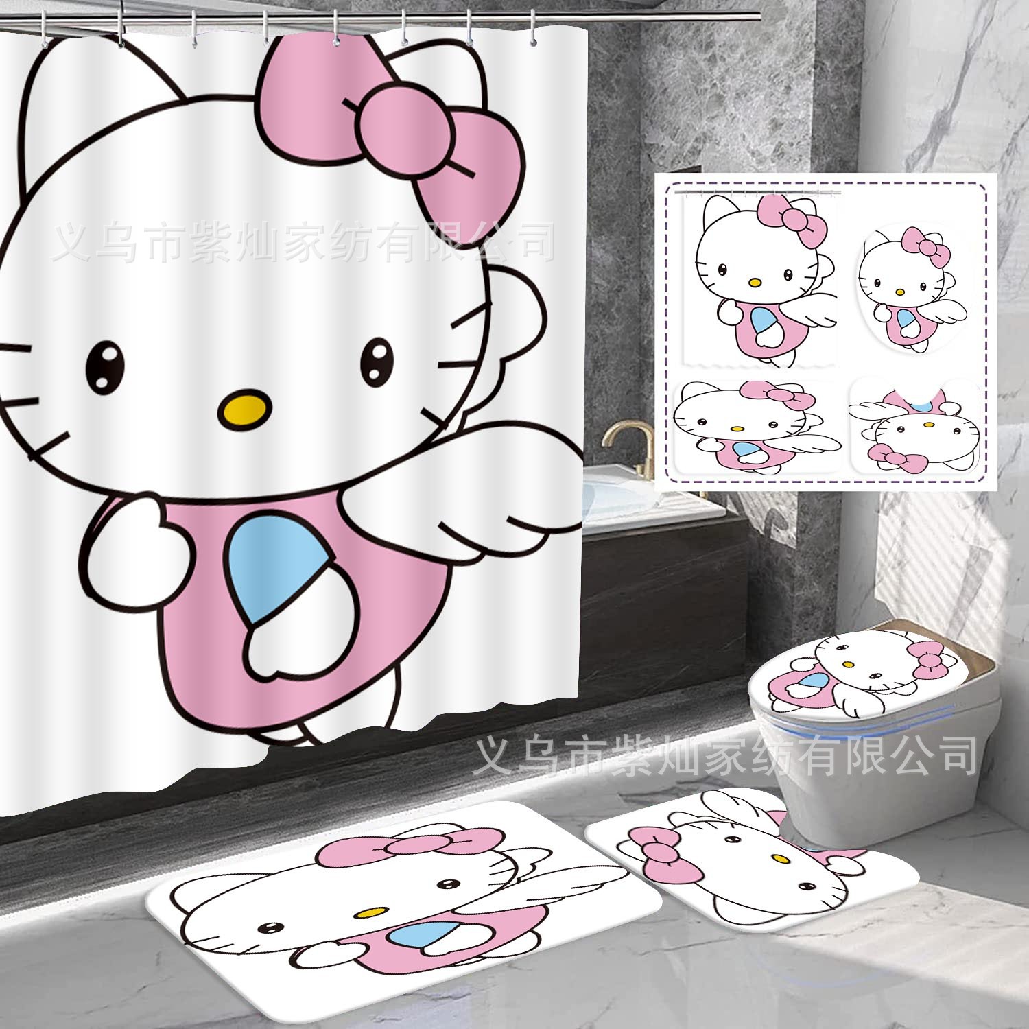 ピンクハローキティシャワーカーテン4点セットバスルーム装飾防水シャワーカーテンカーペット滑り止めマットkt猫バスルームセット