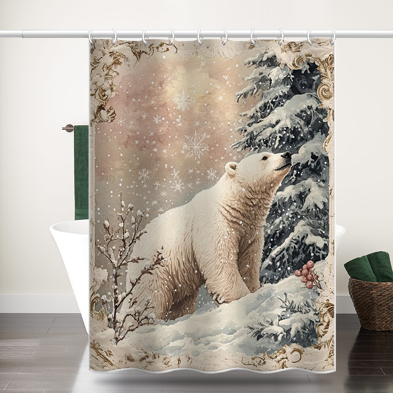国境を越えたアマゾンは冬のベアー防水プリントポリエステルシャワーカーテン防水防かびシャワーカーテンメーカー直販を提供している