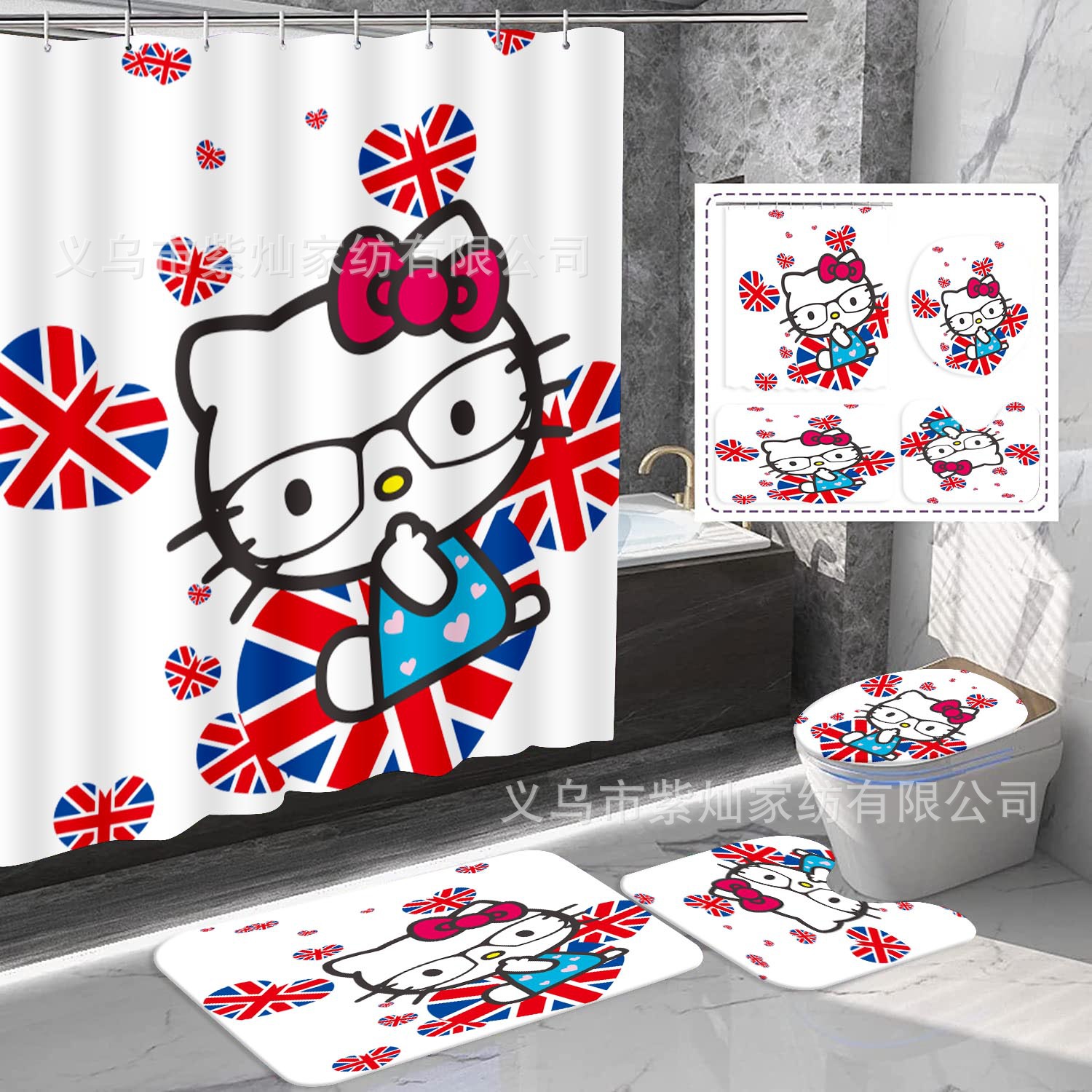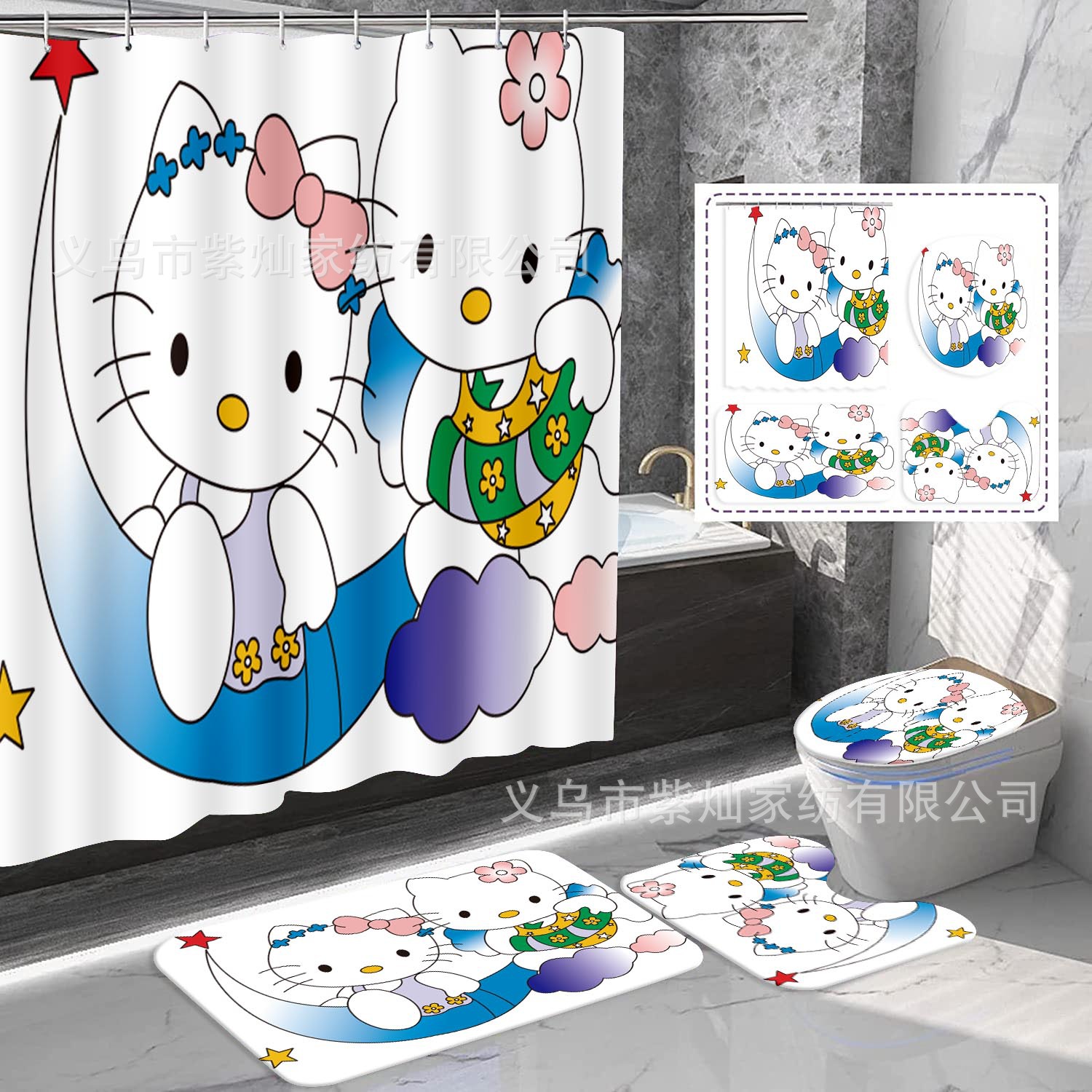 起爆kt猫シリーズhdデジタルプリント防かび防水ポリエステルシャワーカーテン4点セットメーカー直供カーテン