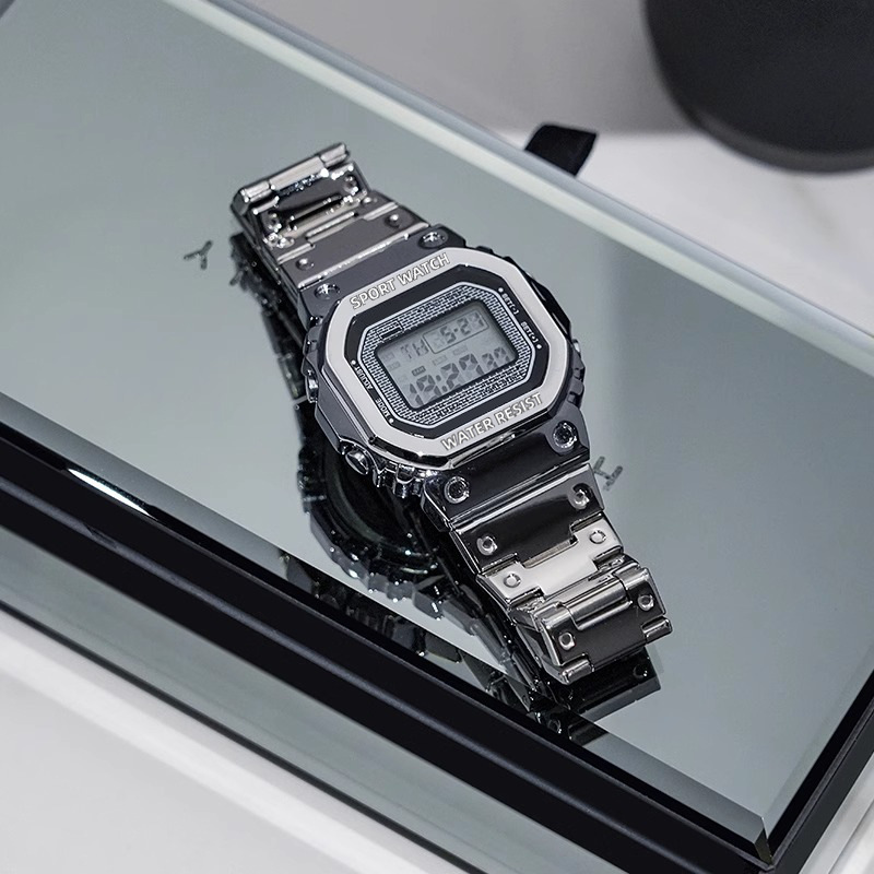 2025 新しい外国貿易小さなシルバー時計小さな正方形多機能ハンドライト防水ブラックテクノロジー中学生男子