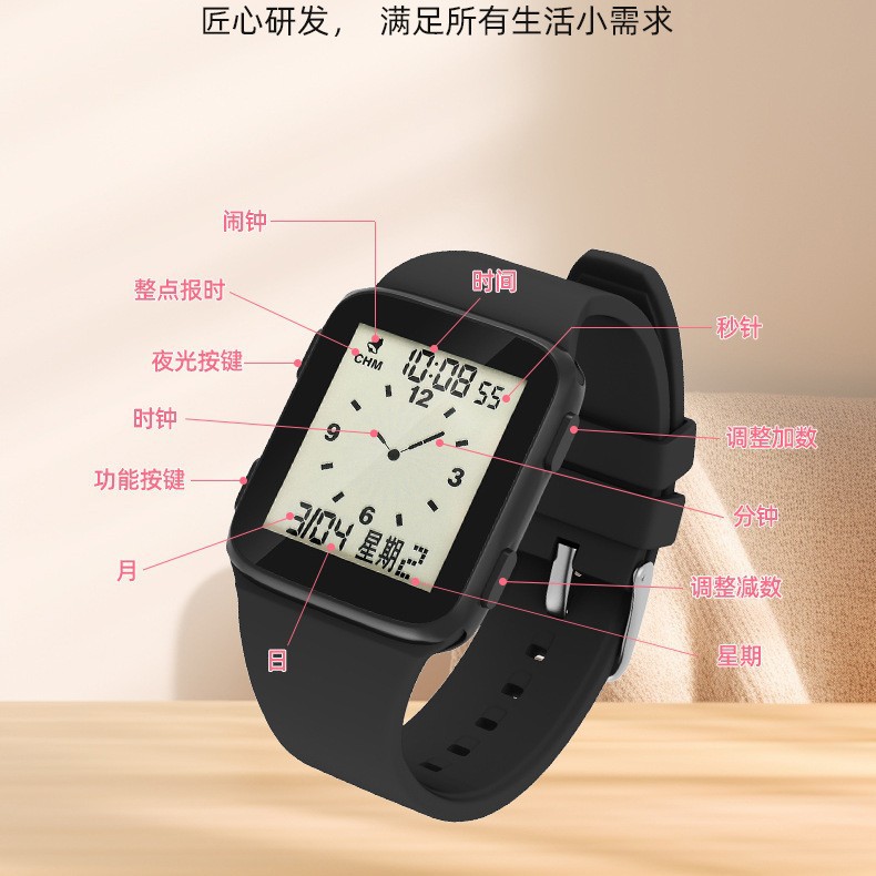 2024新型電子腕時計男子中学校の高校の学生は高颜値運動防水女子の小さな四角を使っている