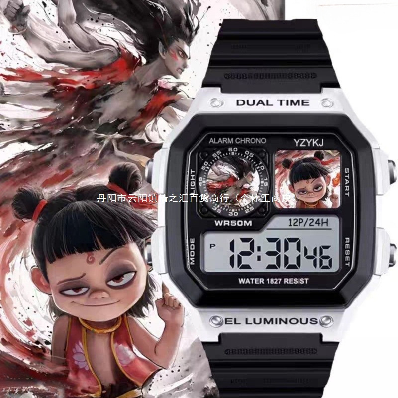 ネザ魔童ノア海映画子供中学生防水目覚まし時計付き小さな正方形時計のバッテリー寿命は 1 年です