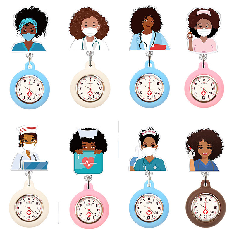 10色アクリルブラック看護師伸縮式看護師医師FOB懐中時計ワニ挟み薬時計プレゼント腕時計