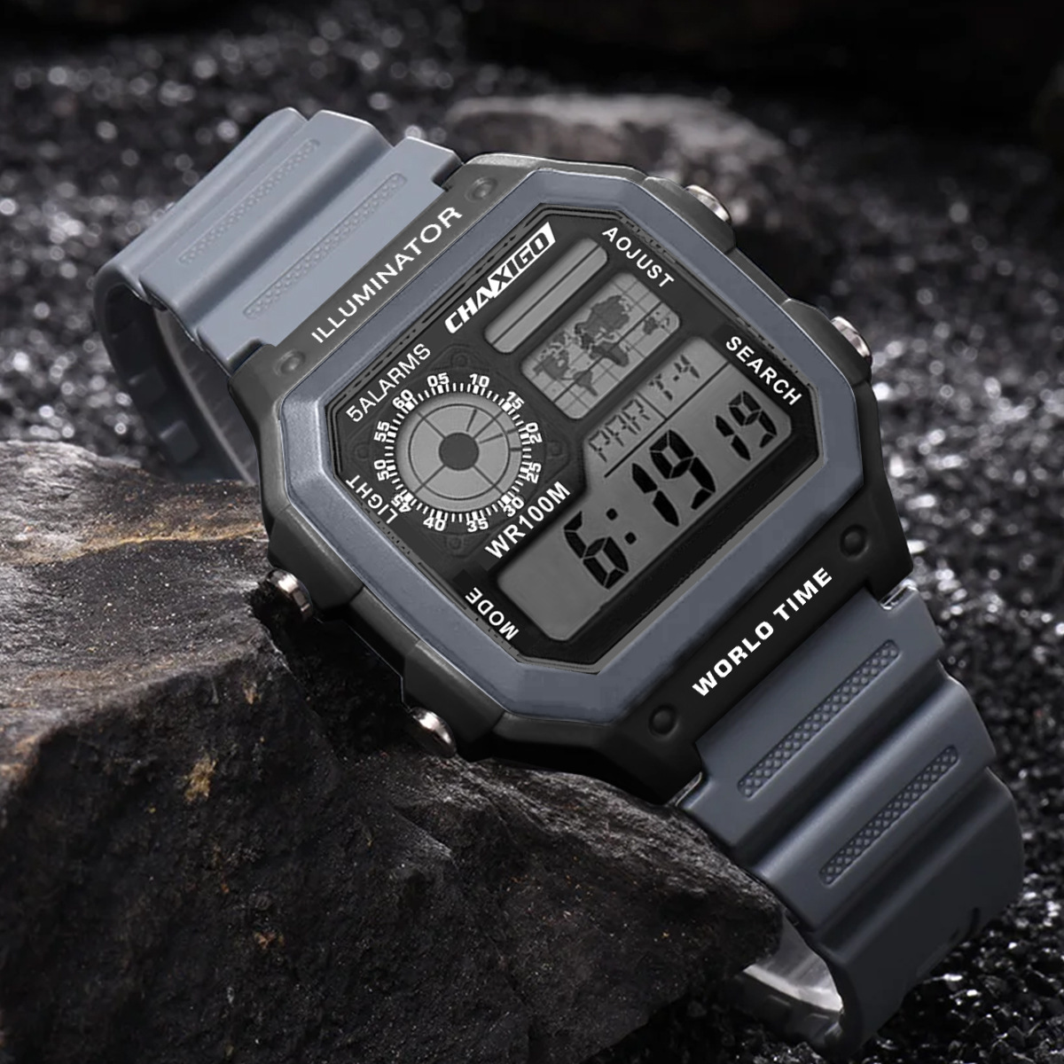 新型水泳屋外腕時計男子学生青少年潮流大文字板防水多機能運動電子時計男
