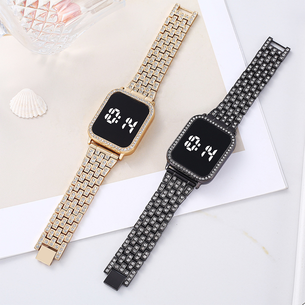国境を越えて人気のあるledタッチ表示ドリル付きブレスレットセット時計にドリル付き石英時計男性女性腕時計を入れる