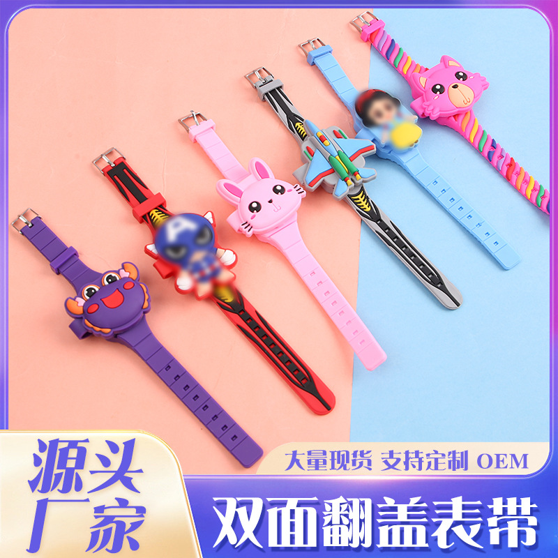 両面フリップ時計バンド子供用時計シリーズユニバーサル漫画パターン時計卸売さまざまな種類