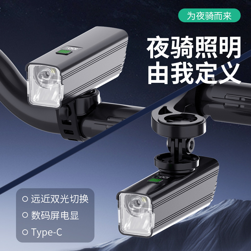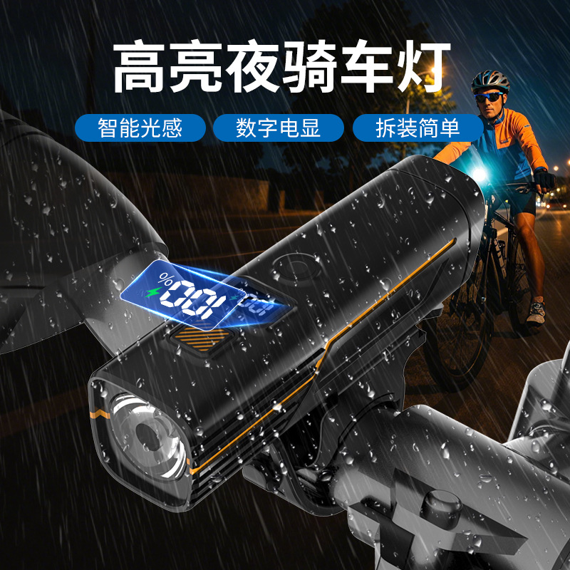 国境を越えた新型自転車灯ヘッドライトType-C充電戸外防雨知能光感スクリーン夜騎行灯