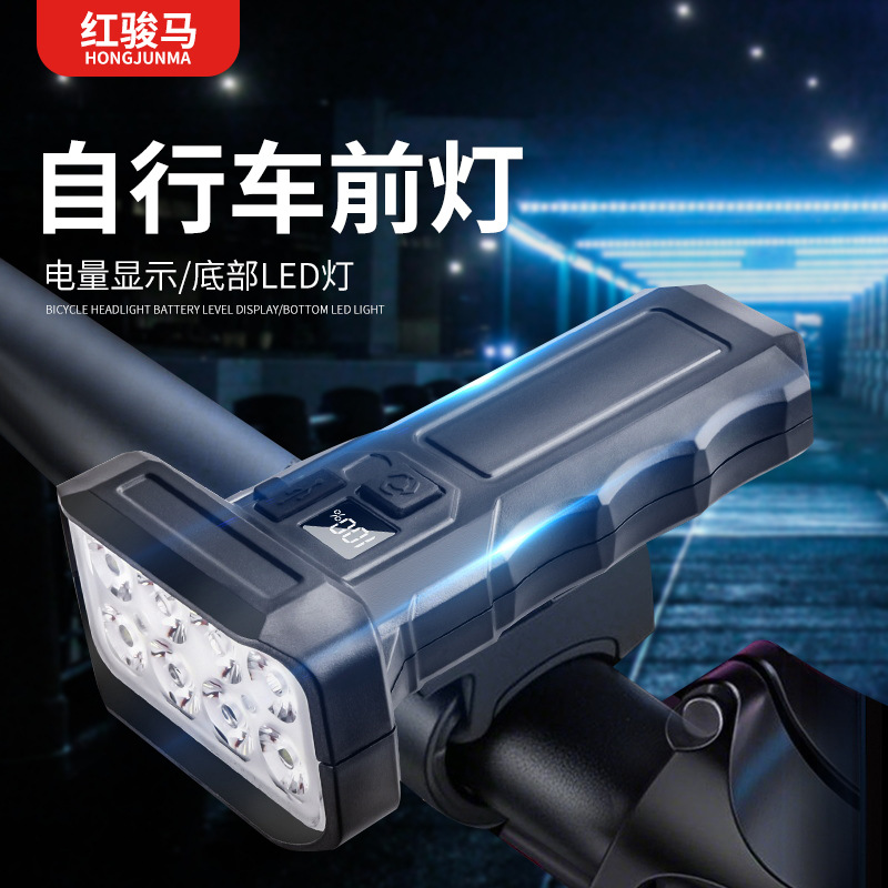 クロスボーダーの新しい屋外サイクリング用品、ホーン付きハイライト自転車ヘッドライト、デジタルディスプレイ、防水マウンテンバイクライディングライト