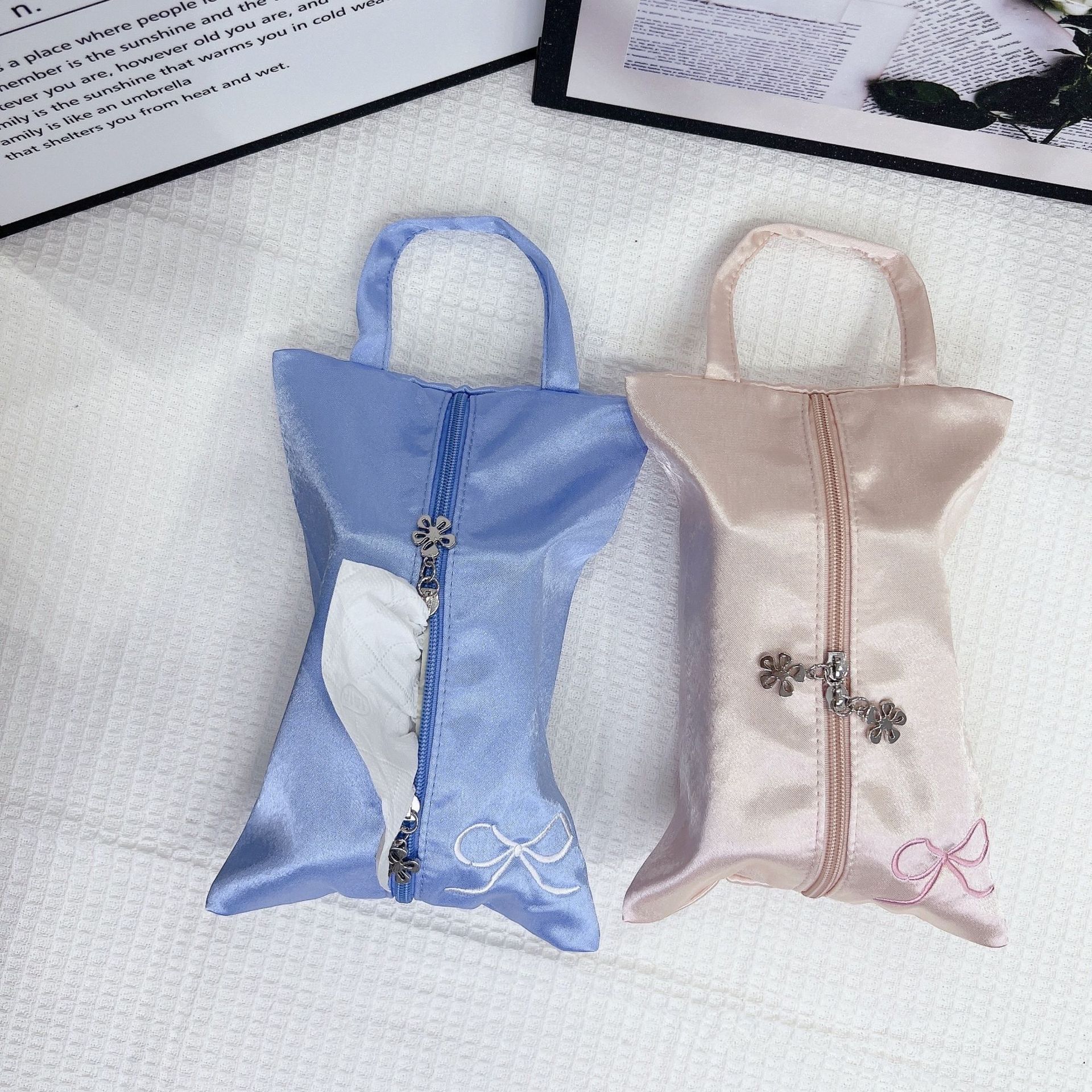 蝶結びティッシュセットins家庭用リビングルームの引き出し箱ウェットティッシュ収納袋車載多機能ティッシュケース