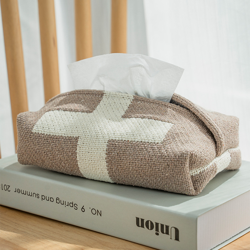 布芸ティッシュケースティッシュ袋ティッシュ収納袋ソファー茶何枚か車載綿麻編み環境保護通気異臭なし