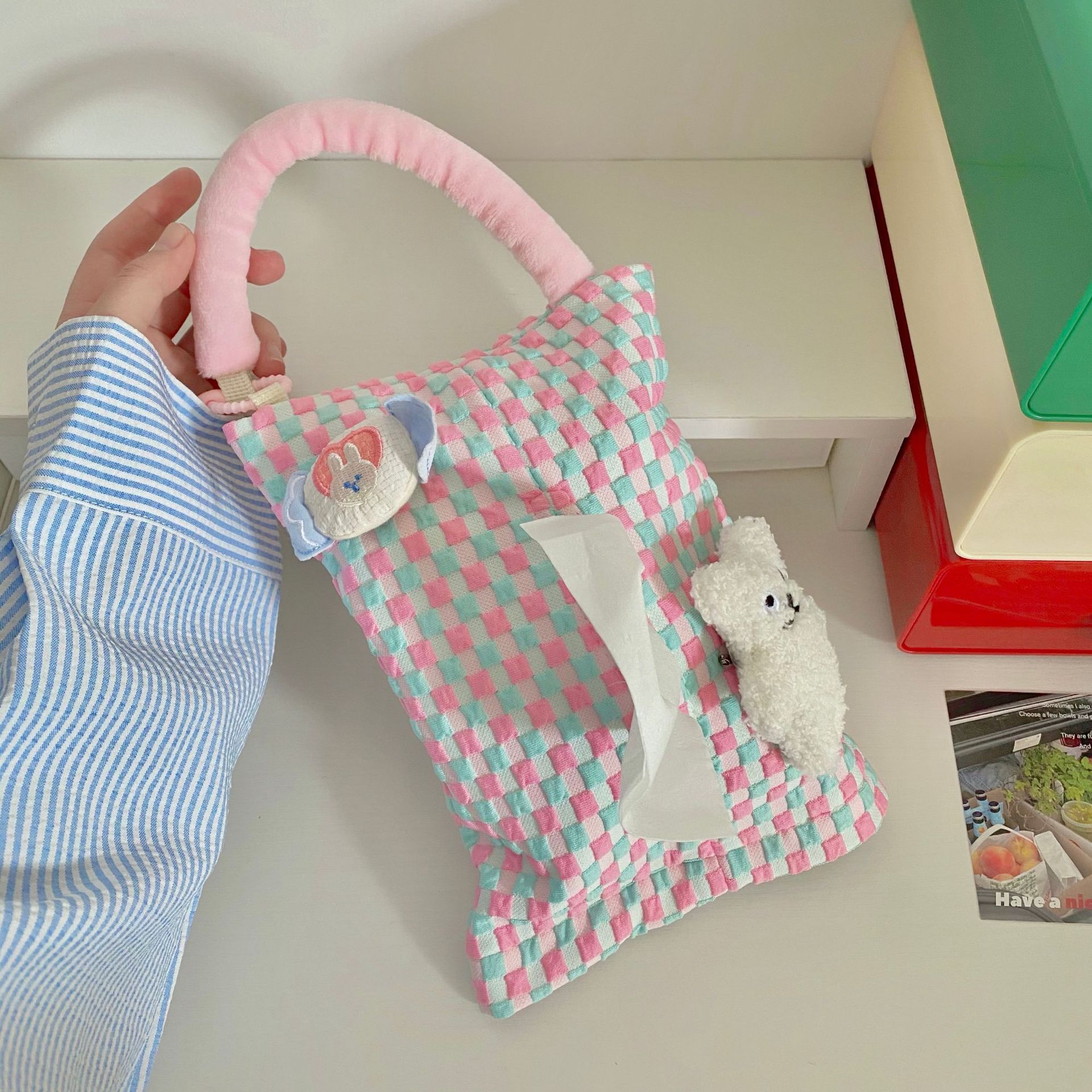 かわいいアニメのぬいぐるみバッグ掛けティッシュカバーぬいぐるみ家庭用紙袋クリエイティブ携帯ティッシュカバーキーホルダー