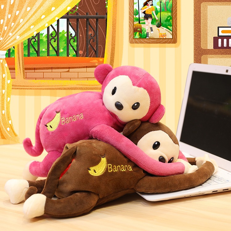 かわいい猿のぬいぐるみのティッシュはぬいぐるみのおもちゃを引き出します。