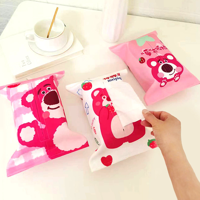 掛け式ティッシュバッグかわいいアニメいちご熊ティッシュバッグリビングキッチン布芸綿麻印刷可能模様ティッシュケース
