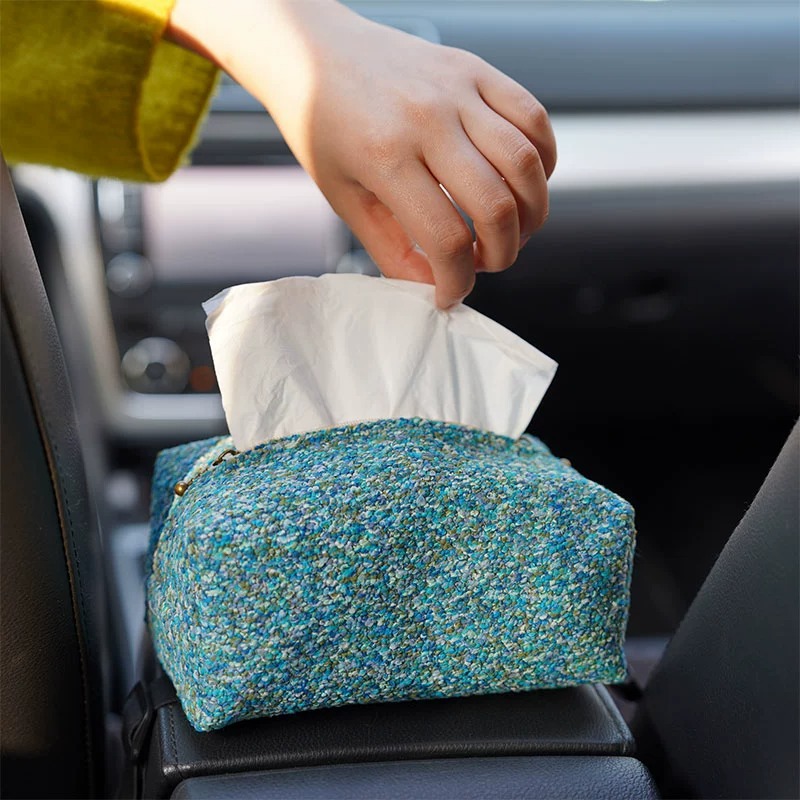Ins寂風綿糸編み創意和式布芸ティッシュボックス食卓リビング車載ティッシュカバーティッシュバッグ