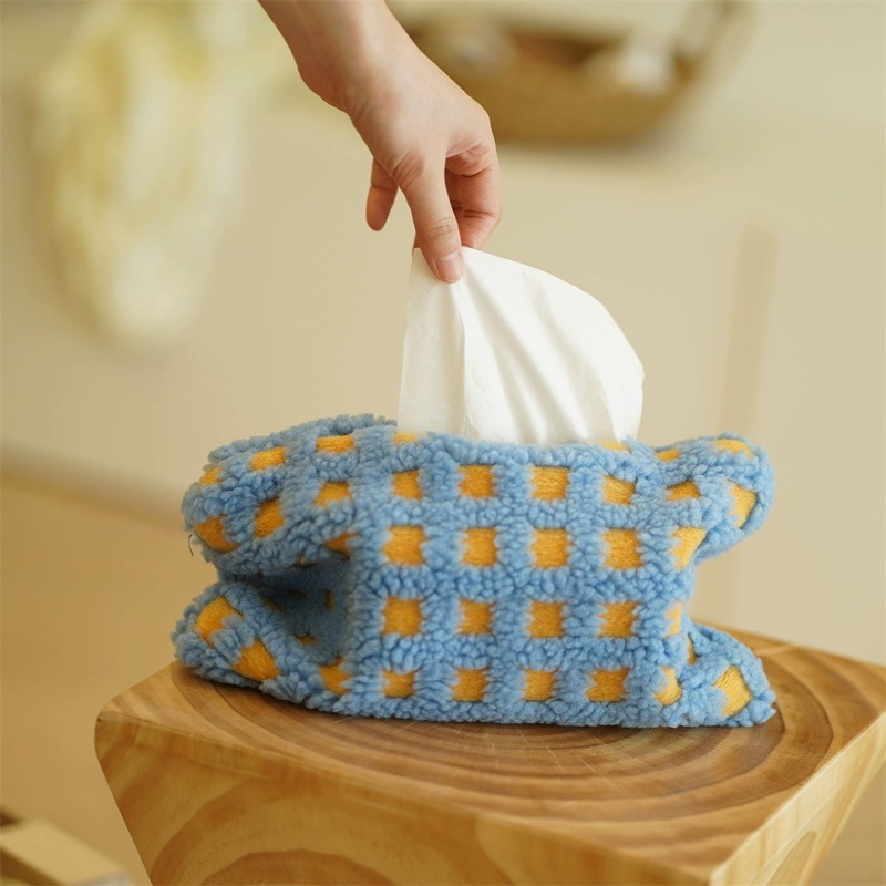 Ins風高颜値パイル格子クリエイティブティッシュ袋客間寝室雰囲気ティッシュ布芸