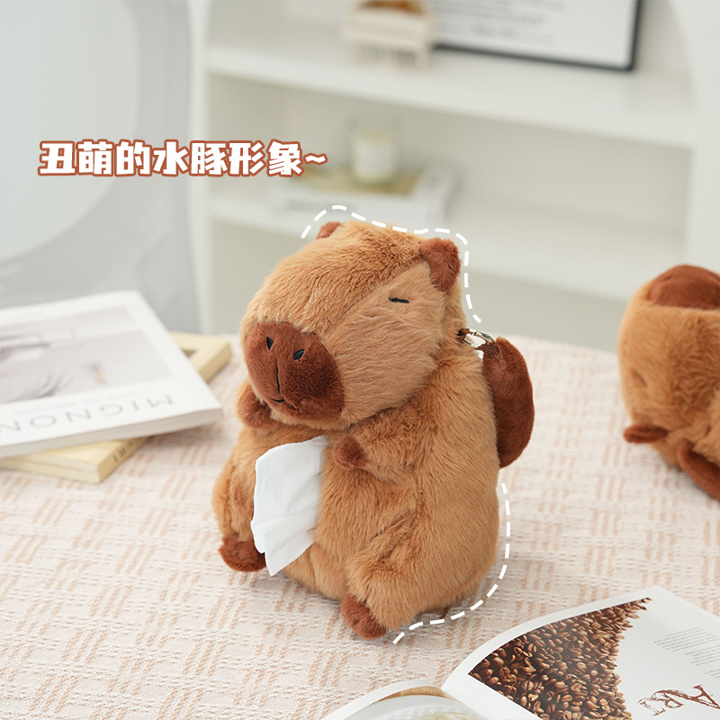 かわいい新商品のカピバラは紙のネットの赤い美ラードのカピバラを引き出して紙袋の家庭のペンダントのかわいいティッシュの箱を引き出します。