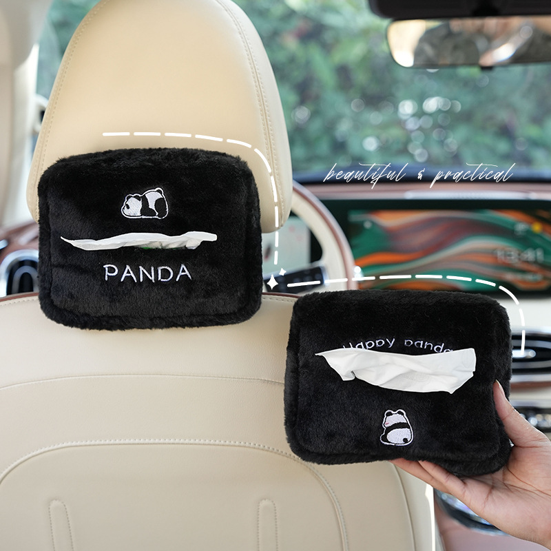 黒パンダペーパータオル箱ぬいぐるみかわいいティッシュ袋多機能吊り式客間家車両用引き出し箱