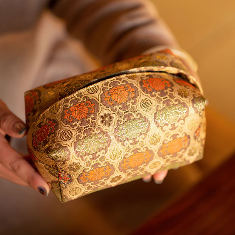 知舎オリジナル金編如意蓮紋吸紙箱布芸ティッシュケース茶室茶道零配吸紙袋収納袋