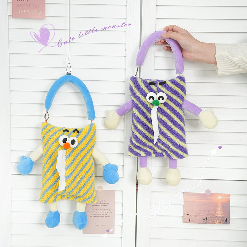 ぬいぐるみのストライプの小さい怪獣の創意的なティッシュの箱の漫画のかわいい掛け式のティッシュはドーパミンの客間を吸って紙を引き出します。