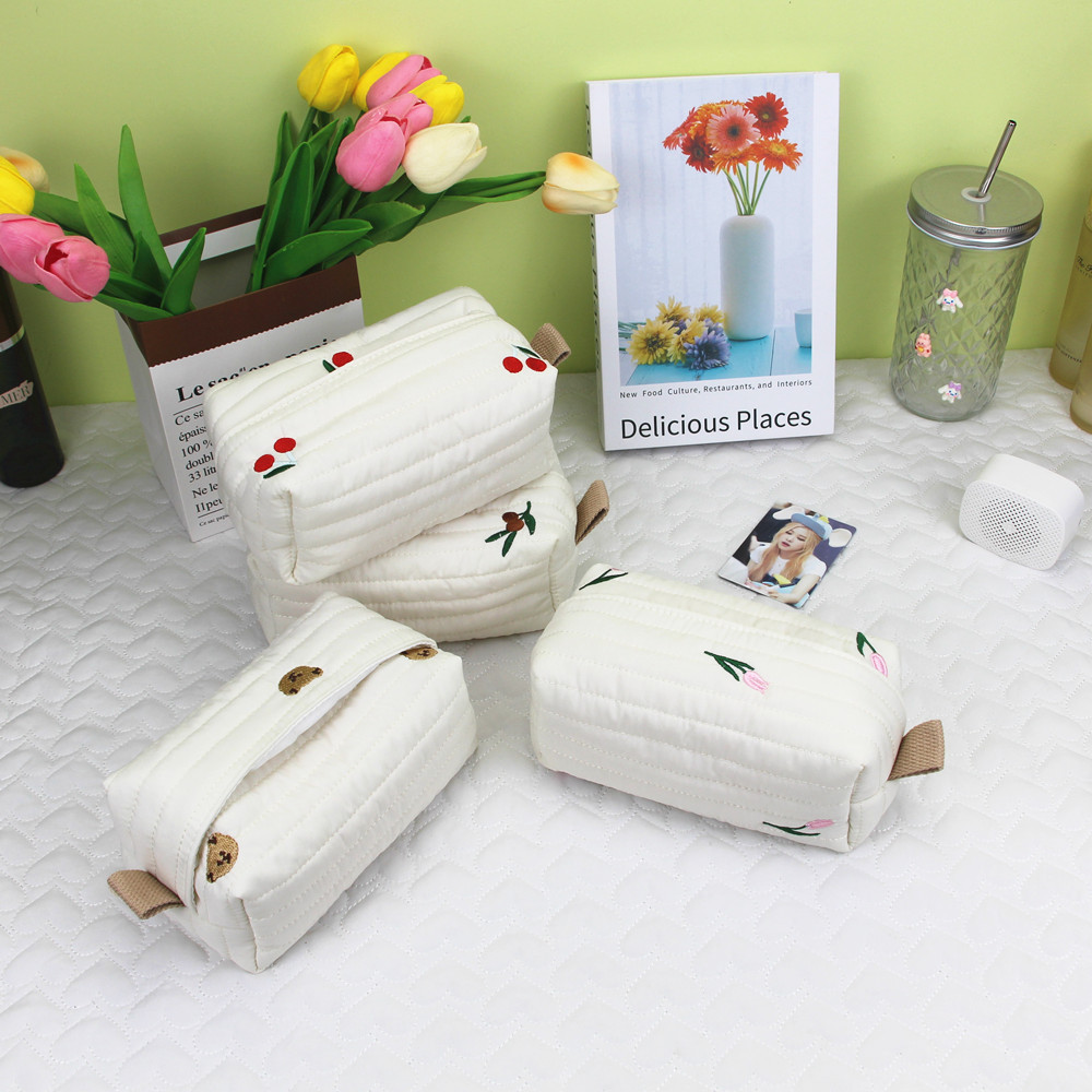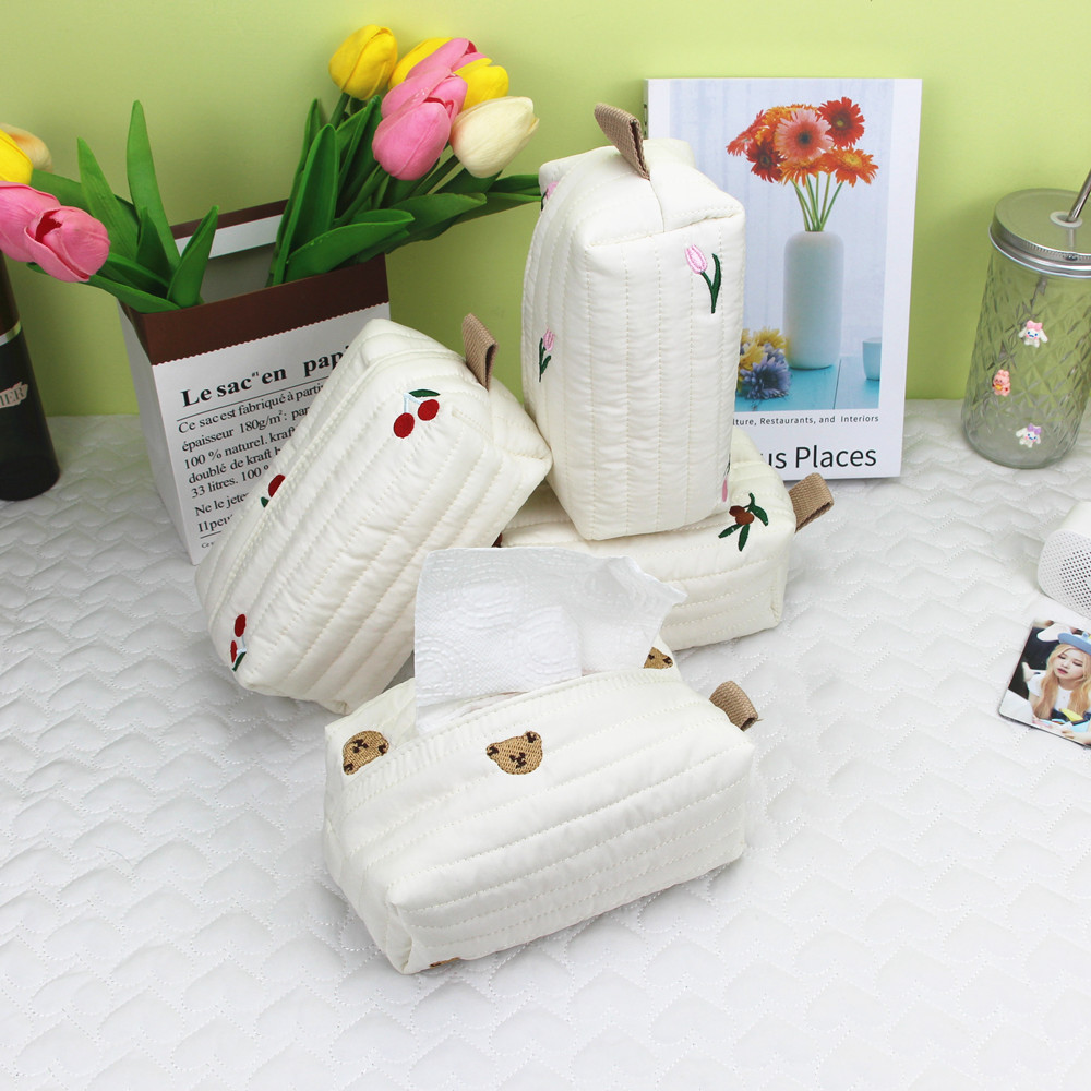 新品韩国インスタ风コットンキルティングティッシュケース可爱いチェリー刺繍寝室デスクトップ収纳バッグ引き出し箱