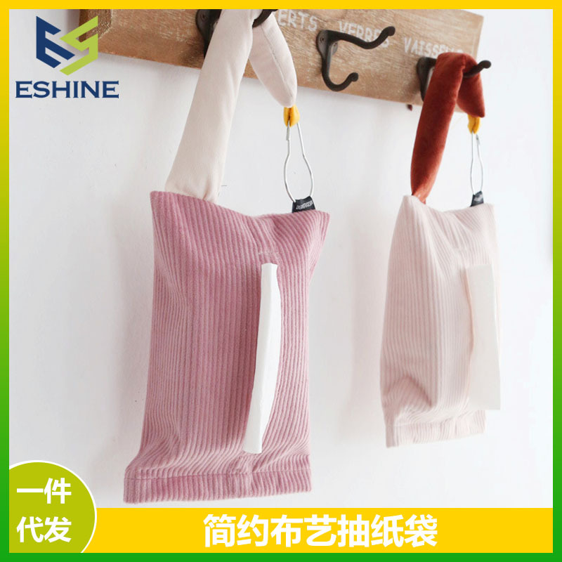 クリエイティブ吊り下げ引き紙キャンバス袋ティッシュ袋シンプル文芸リビング家庭用車載ティッシュケース壁収納袋