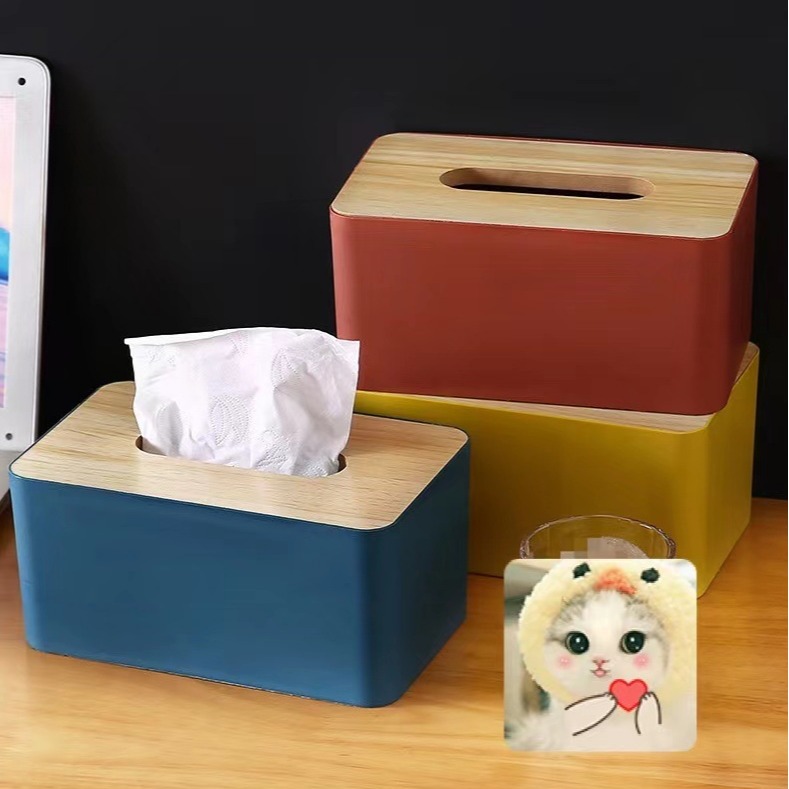 竹の蓋のプラスチックの材質のティッシュの箱の客間の家庭用の引き出しの箱のデスクトップは簡単に収納します。