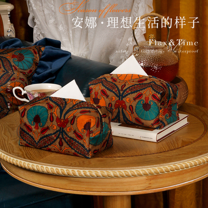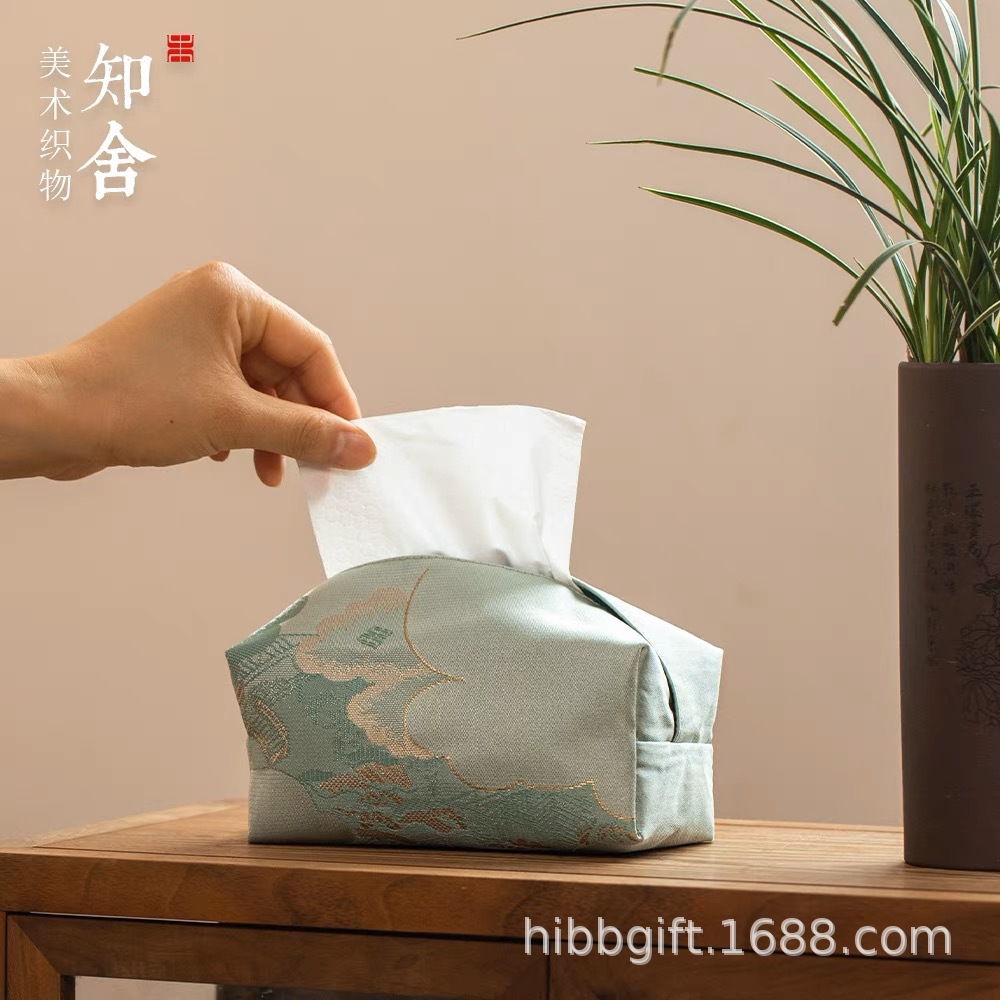 知舎雲霞翠軒織錦吸紙箱多機能創意レトロ収納袋ベッドサイドテーブル車載ティッシュケース