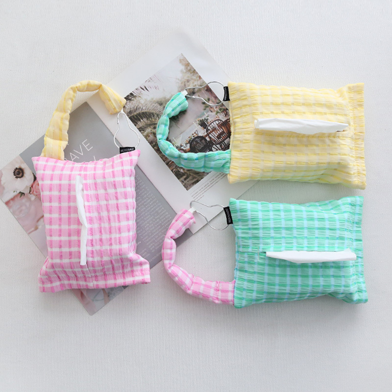 美作元素デザイン 車載ティッシュボックス 家庭用 韓国風 カラフルチェック柄ティッシュバッグ 寝室用 吊り下げ式ティッシュボックス