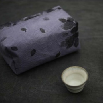 新商品の知舎は春帰織錦を載せて紙の箱を引き出します。