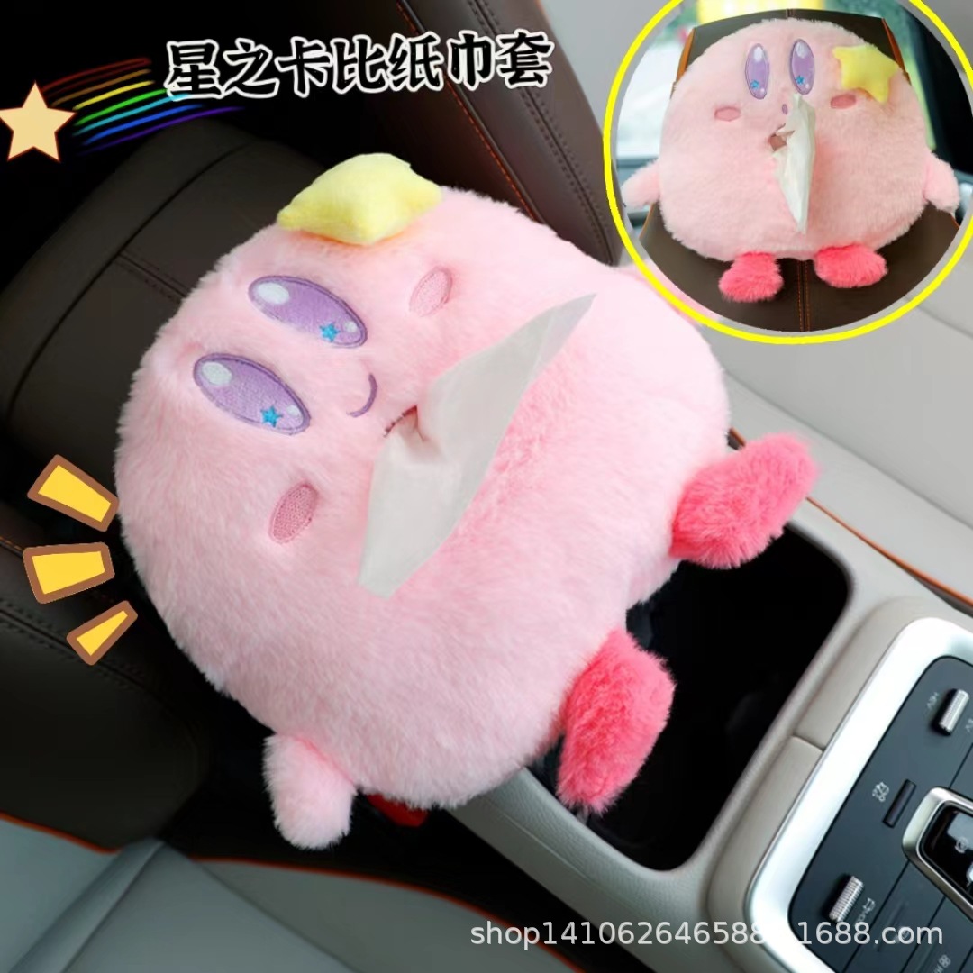 日系少女心かわいいカービーぬいぐるみティッシュティッシュカバー車載用ティッシュ収納袋ティッシュ