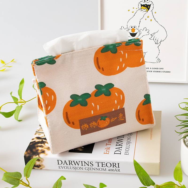 オリジナル図綿麻ティッシュボックス客間引き出し箱柿図布芸平口タイプティッシュボックス多機能収納ボックス