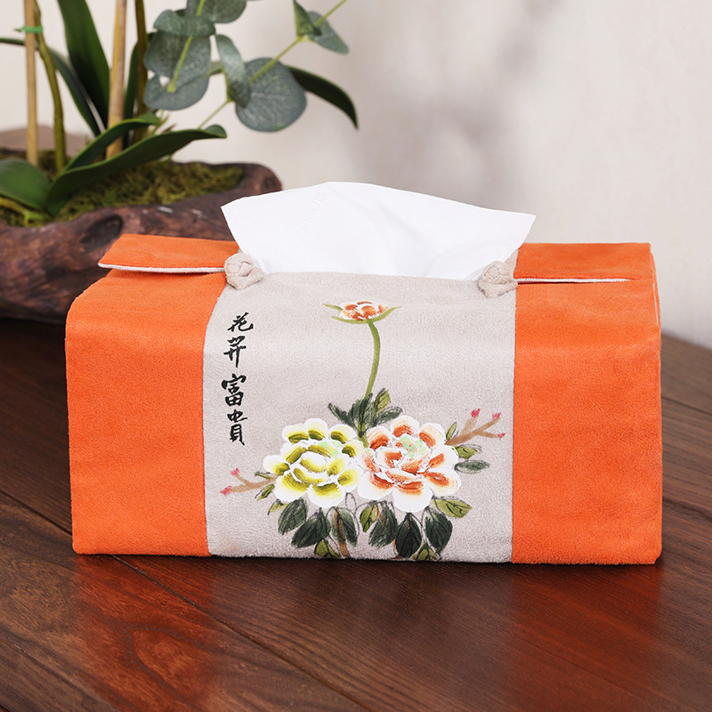 新中国式シンプルなティッシュボックスセット茶卓レストラン車載創意スエード手描き布芸中国風引き出し箱