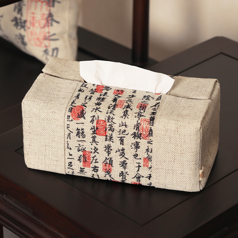 新中国式蘭亭序文字茶卓レストラン車載創意ティッシュカバー茶何布芸中国風引き出し箱カバー