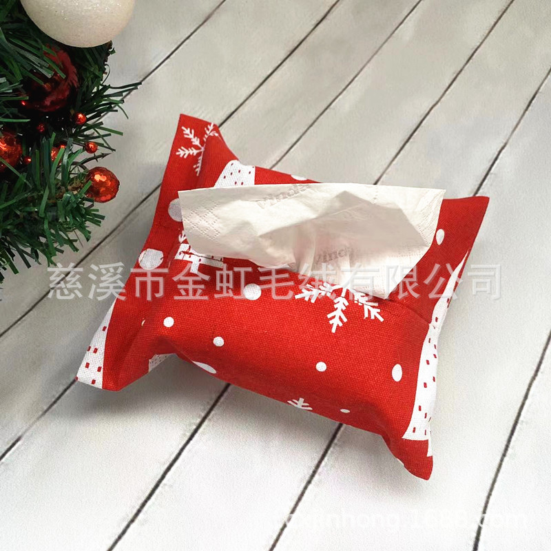 新商品の赤いキャンバスのティッシュカバーの小さい木の雪模様の布芸のティッシュの箱の寮の車載のベッドの頭の箱の家庭用品